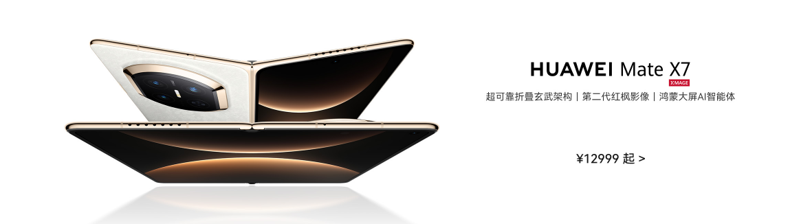 另外,新款折叠屏旗舰华为Mate X7以形态创新与技术融合定义新标杆。机身将非遗云锦工艺与现代科技相融,云锦白、云锦蓝配色通过纳米纤维材质复刻传统纹样质感,搭配“时空之门”摄像头模组与机翼铝中框,在轻薄机身中融入超可靠折叠玄武架构,第二代玄武钢化昆仑玻璃(典藏版)与三重复合超韧叠层内屏,让耐用性与颜值兼得。影像上延续第二代红枫原色技术,色彩还原能力提升 43%,搭配超高动态主摄与长焦微距,17.5EV超高动态视频与悬停拍摄、AI 辅助构图功能,让轻薄折叠屏也能拥有直板旗舰级影像表现。