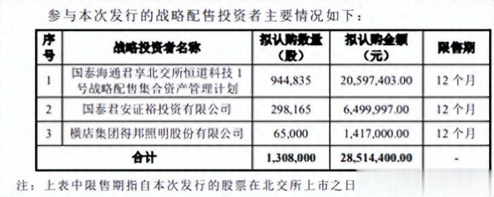 海牛投研4月2日,恒说念科技(920177)北交所IPO战投名单出炉,引入国泰海通君享北交所恒说念科技1号计谋配售结结伴产照应绸缪和国泰君安证裕投资有限公司等3家战投共拟认购130.8万股。