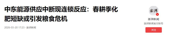 滂沱新闻:中东动力供应中断现四百四病:春耕季化肥短少或激发食粮危急