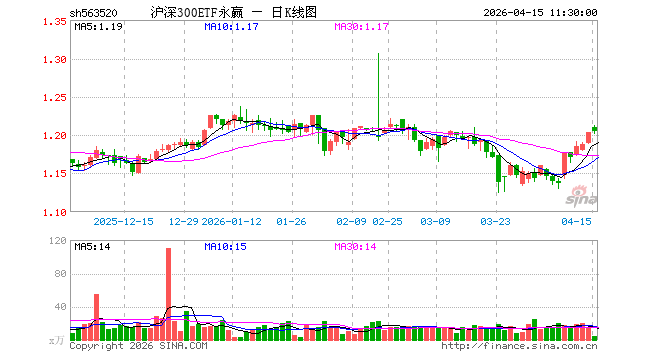 开云 沪深300ETF永赢(563520)涨0.17%, 半日成交额544.16万元