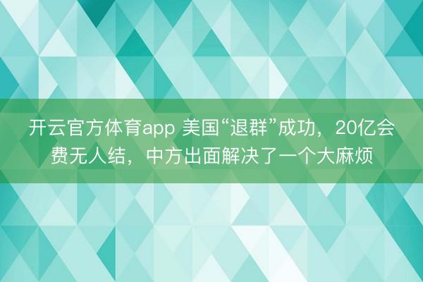 开云官方体育app 美国“退群”成功,20亿会费无人结,中方出面解决了一个大麻烦