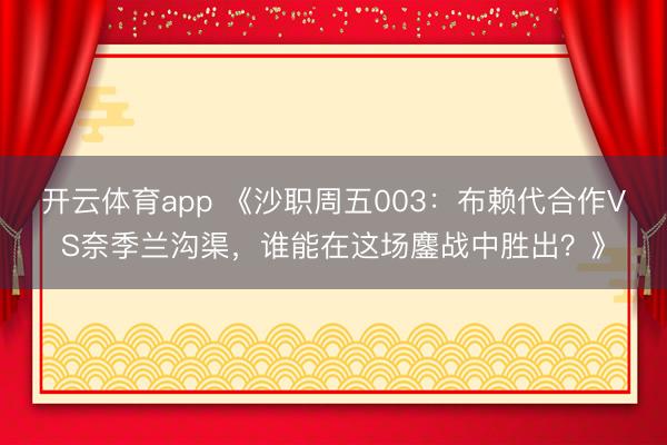 开云体育app 《沙职周五003:布赖代合作VS奈季兰沟渠,谁能在这场鏖战中胜出?》