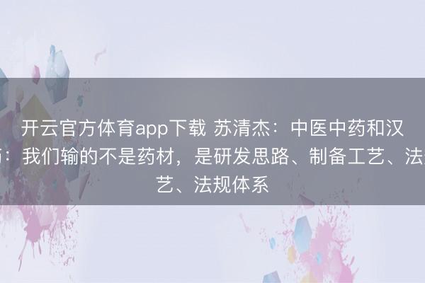 开云官方体育app下载 苏清杰:中医中药和汉方汉药:我们输的不是药材,是研发思路、制备工艺、法规体系