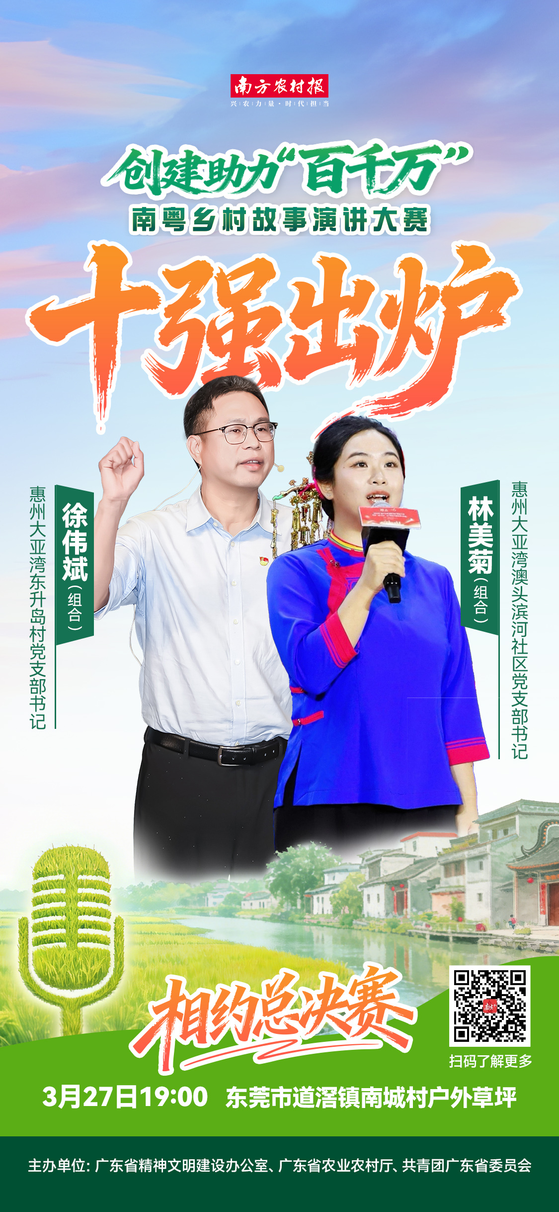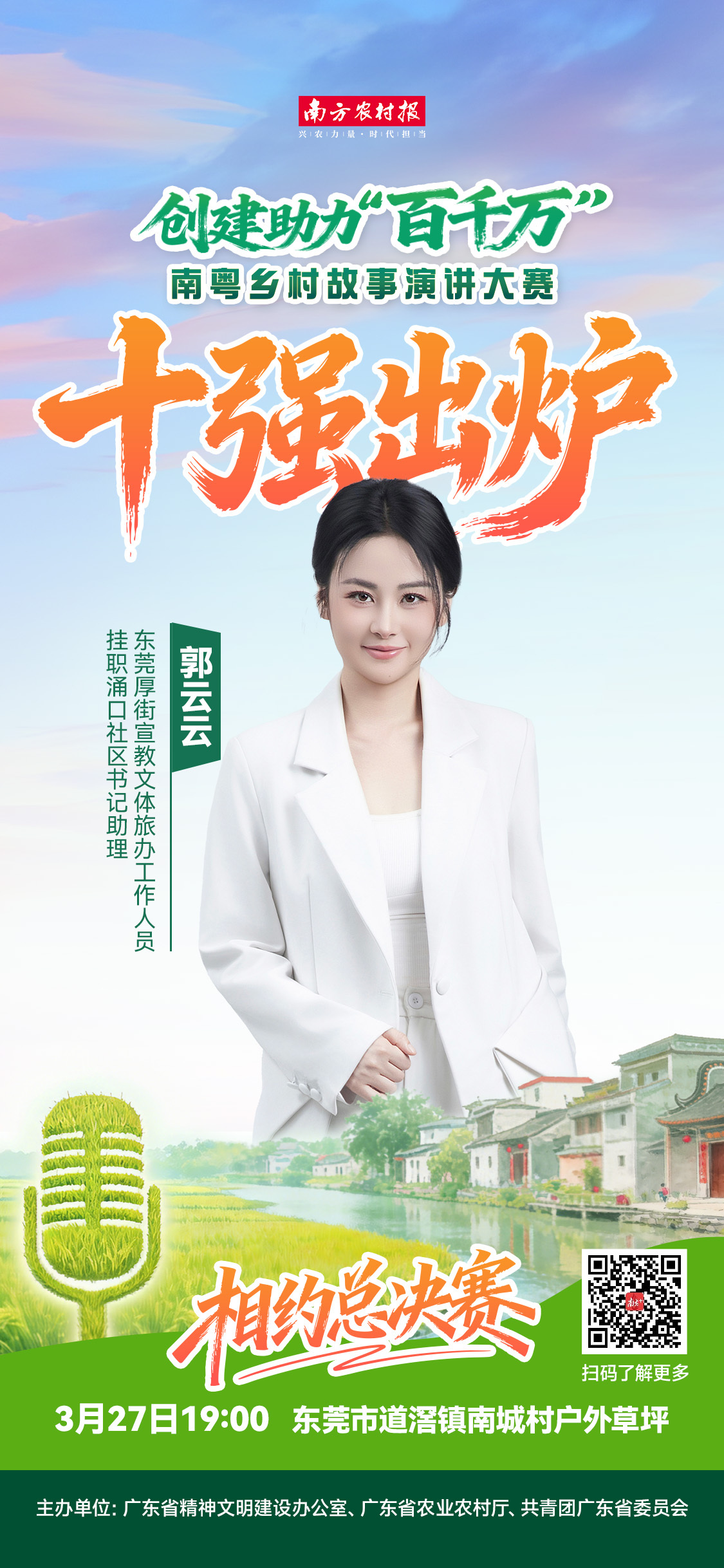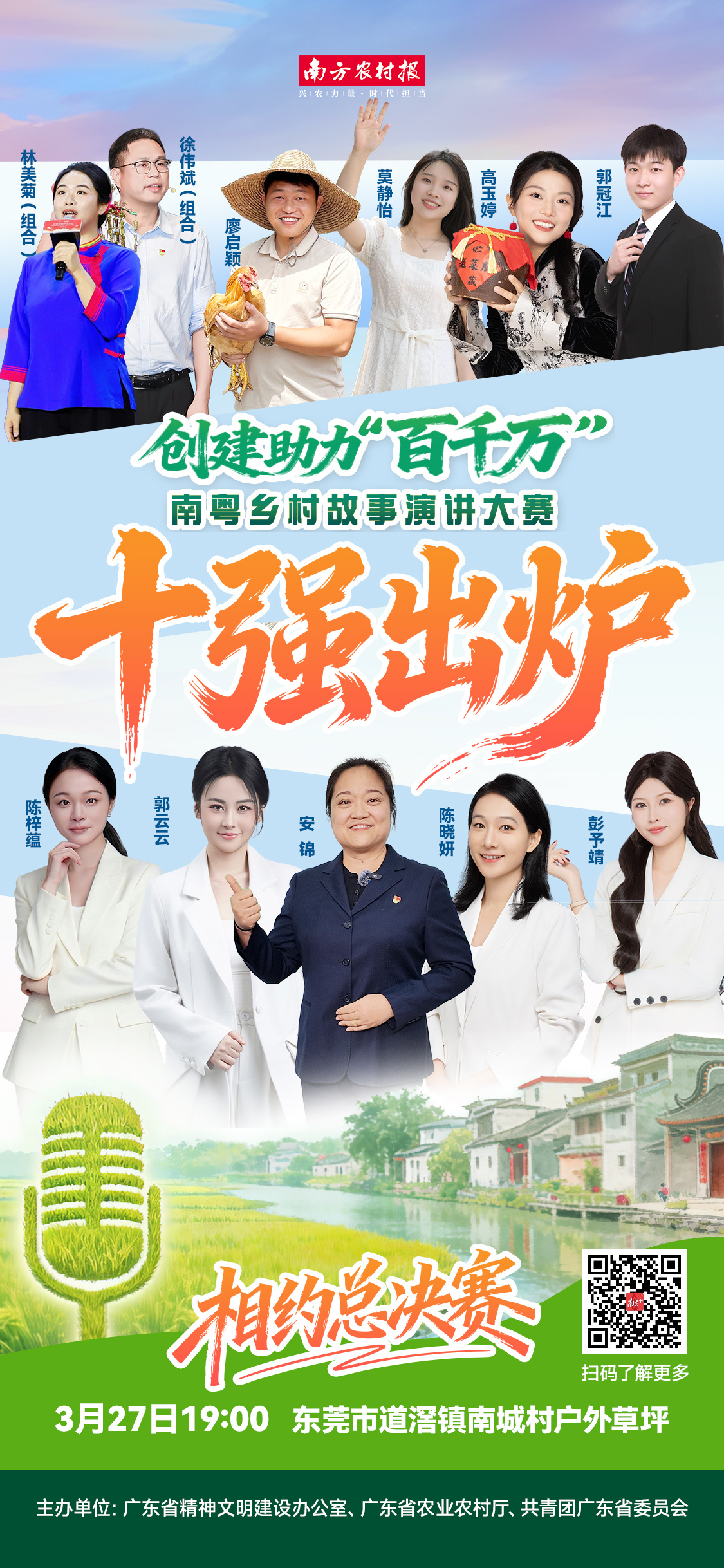 十强出炉,蓄势待发!3月27日晚上7点,开云相约东莞谈滘,凝听南粤故事!#南粤乡村故事演讲大赛 #创建助力百千万