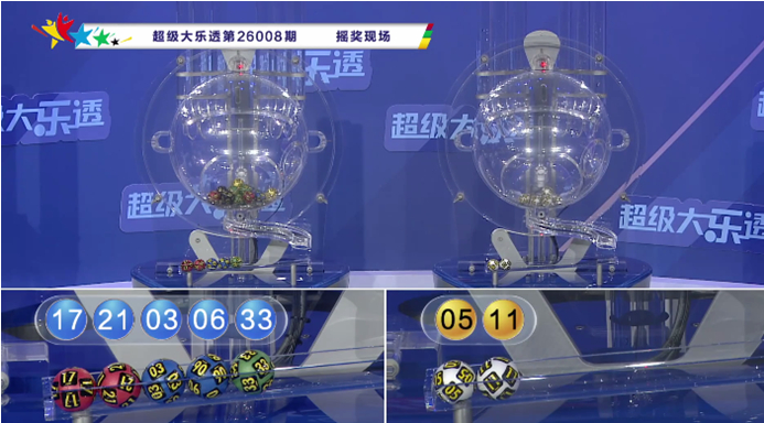上期开奖:大乐透第2026008期开奖:03、06、17、21、33+05、11,前区012路比为4:0:1,奇偶比为4:1,五区比为2:0:2:0:1,大小比为2:3。