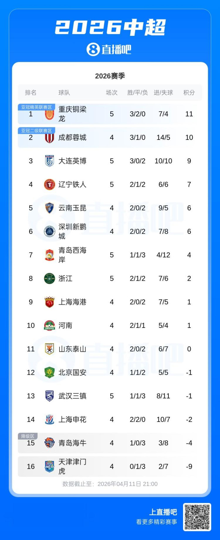 直播吧04月11日讯中超第5轮,重庆铜梁龙2-1驯顺武汉三镇,开赛5轮3胜2平保捏不败,开云官方体育app下载先赛情况下跨越成王人蓉城1分,队史初次登上中超积分榜榜首!