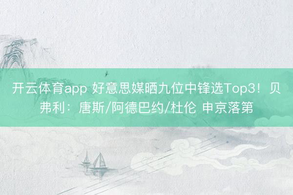 开云体育app 好意思媒晒九位中锋选Top3!贝弗利:唐斯/阿德巴约/杜伦 申京落第